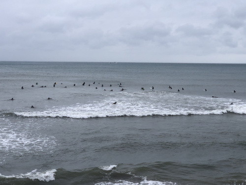 雨、風が強く富士山をみながらゆったりサーフィンとはいきませんでしたが、久しぶりの良い波とたくさんの人にもまれて楽しかったです。